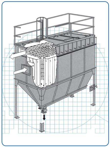 The Bag Filter is an automatic dust collector used to filter air streams from dust and particles emitted during manufacturing processes. The filter optimized for the most massive dust loads in minerals industry processes, such as crushing; grinding; pneumatic conveyance and dehydration of raw materials, and in metal industries casting and metalworking processes.
