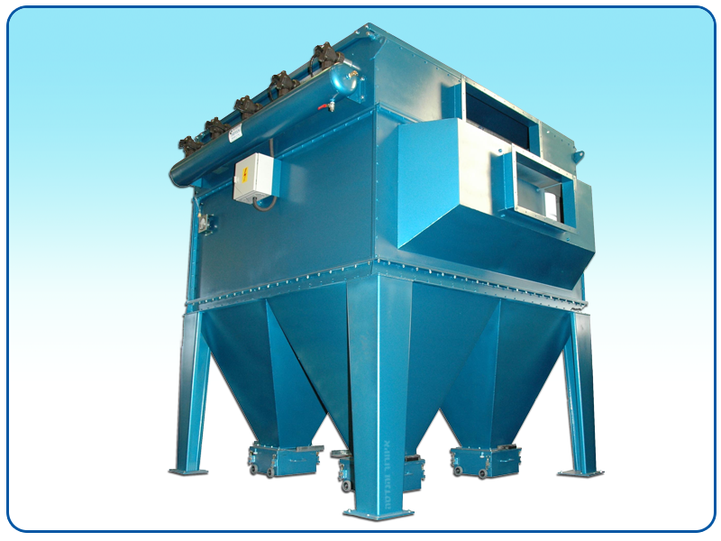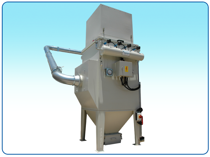 The CARTRIDGE FILTER system is an automatic dust collector used to filtrate air streams from particles and dust emitted during the production process. The dust collector is suitable for an intensive and continuous workflow within various industries such as metal, raw materials, food, minerals, chemical products, pharmaceuticals, wood processing, and food mixing.