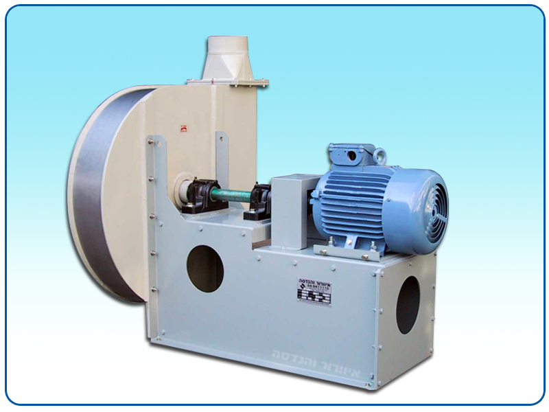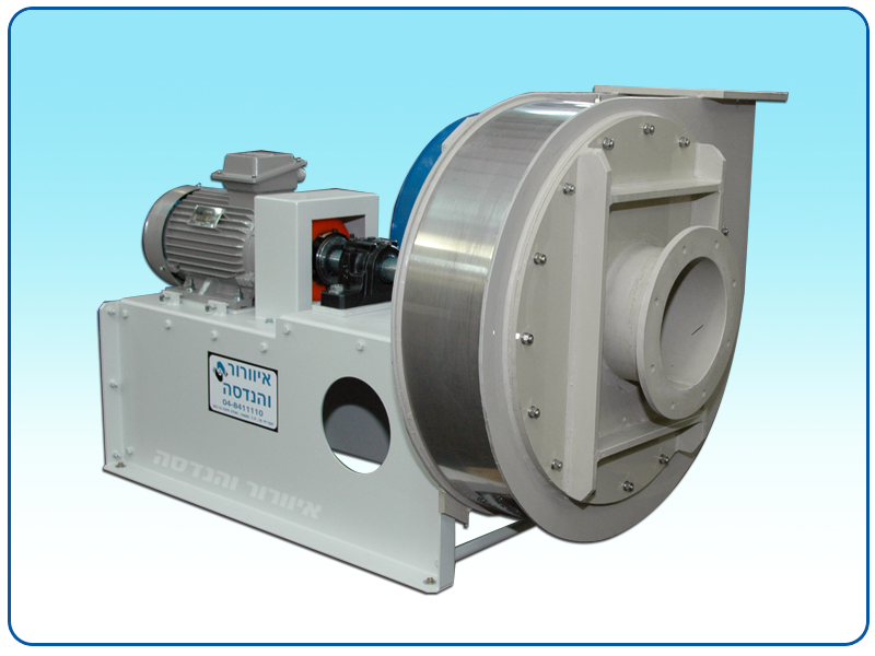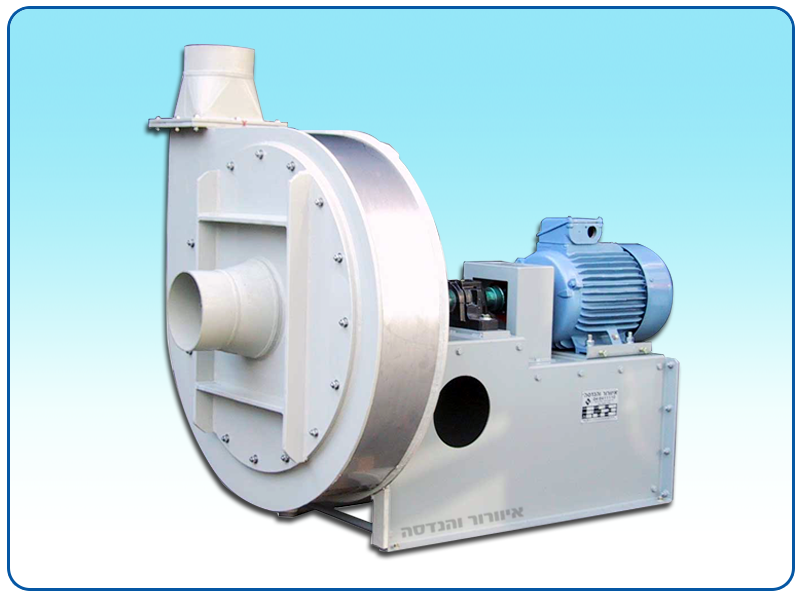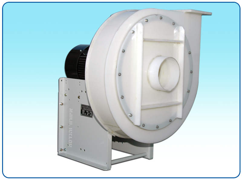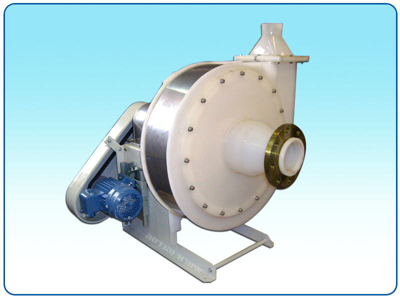 The blower is from extra thick polypropylene or PVDF. The impeller includes stainless steel navel flanges with thick and sealed plastic coating. The flanges include tenons, hex cap screws and screwings for impeller release. All the blowers are statically and dynamically balanced at the process end.